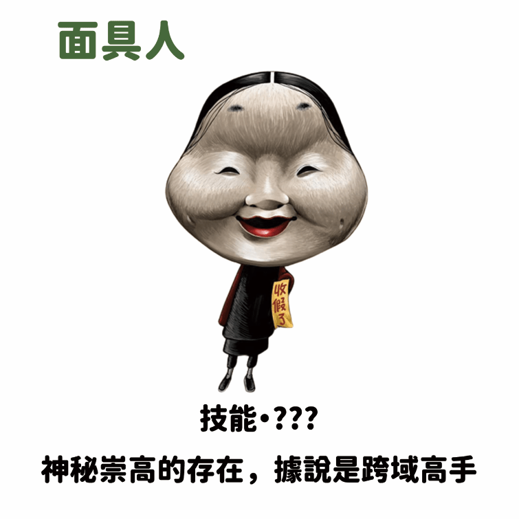 同時,大頭人也透過與不同種族間的交流,不斷的刺激大腦、激發靈感,希望有一天終能進化為面具大頭人。